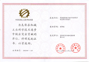 • 中国机械工业科学技术奖获奖证书